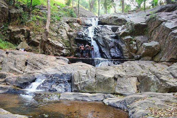 நாலரை கி.மீ கடுமையான காட்டுப் பாதை வழியாகத்தான் ஜீப் போனது. திடும்மென பாறைகள்... சலசலக்கும் ஓடைகள்... காலைப் புதைக்கும் மணல்திட்டுகள் வழியாக ஜீப் சவாரி செம த்ரில்லிங். ஜீப்பைத் தவிர இங்கே வேறு வாகனங்களை நினைத்தே பார்க்க முடியாது. 1.3 கி.மீ தாண்டி வருவது நெய்யருவி. ‘‘ஜீப் கட்டணம் அதிகமா இருக்கே’’ என்று ஃபீல் செய்பவர்கள், 1. கி.மீ தூரம் நடந்து வந்து நெய்யருவிக்கு வரலாம். நெய்யருவிக்கு இன்னொரு பெயர் ‘பப்ளிக் ஃபால்ஸ்’. அதாவது, பொதுமக்கள் யார் வேண்டுமானாலும் நெய்யருவிக்கு நடந்து வந்து குளிக்கலாம். தனிக்குடித்தனம் புகுந்த கப்புள்ஸ் மாதிரி, கூட்டம் ரொம்ப சிக்கென இருந்தது. ஆள் அரவம் அவ்வளவாக இல்லை. அருவித் தண்ணீர் செம ஜில்..! நெய்யருவியில், ஒகேனக்கல் மாதிரி ஆயில் மசாஜெல்லாம் செய்து விடுகிறார்கள். ‘‘இப்போதாண்ணே எங்களுக்கு டைம்... அதான் 150 ரூபாய்’’ என்று கொழுக் மொழுக்கென ஆயில் மசாஜ் நடந்துகொண்டிருந்தது. நெய்யருவிக்குப் பக்கத்தில் ஒரு மளிகைக் கடை உண்டு. சாப்பாடுகூட இங்கேயே சிம்பிளா சாப்பிட்டுக்கொள்ளலாம். செம ஜில்லென்ற குளியல், வெயிலுக்கு ஆனந்தமாக இருந்தது.
